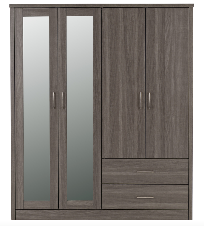 Lisbon 4 Door Mirrored Wardrobe with Two drawers in Black Grain.
