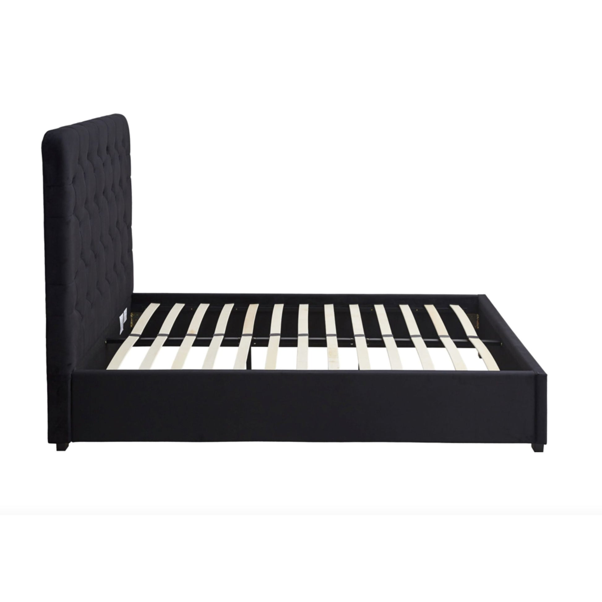 Madison Double Bed with Tall headboard and Base in Black Velvet.