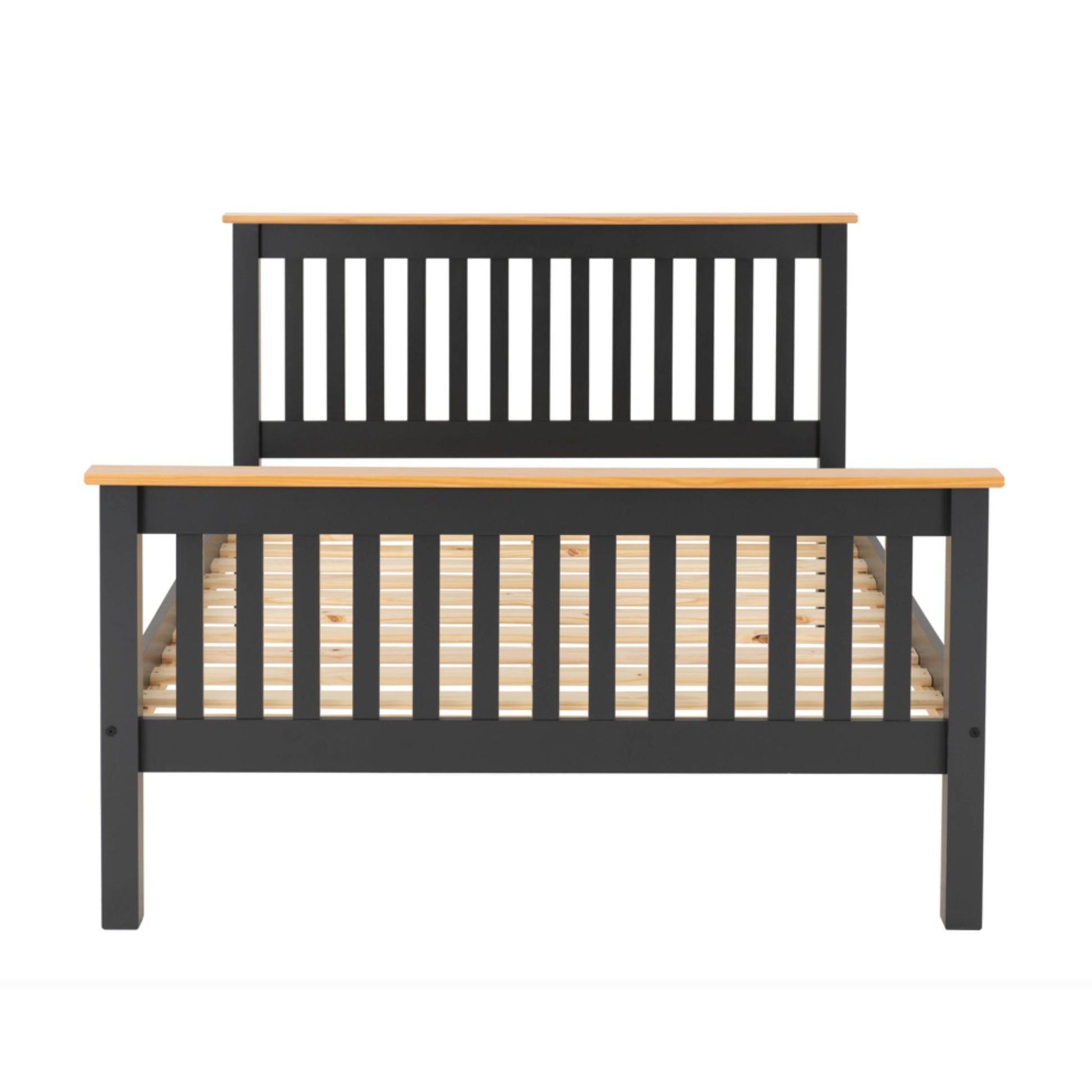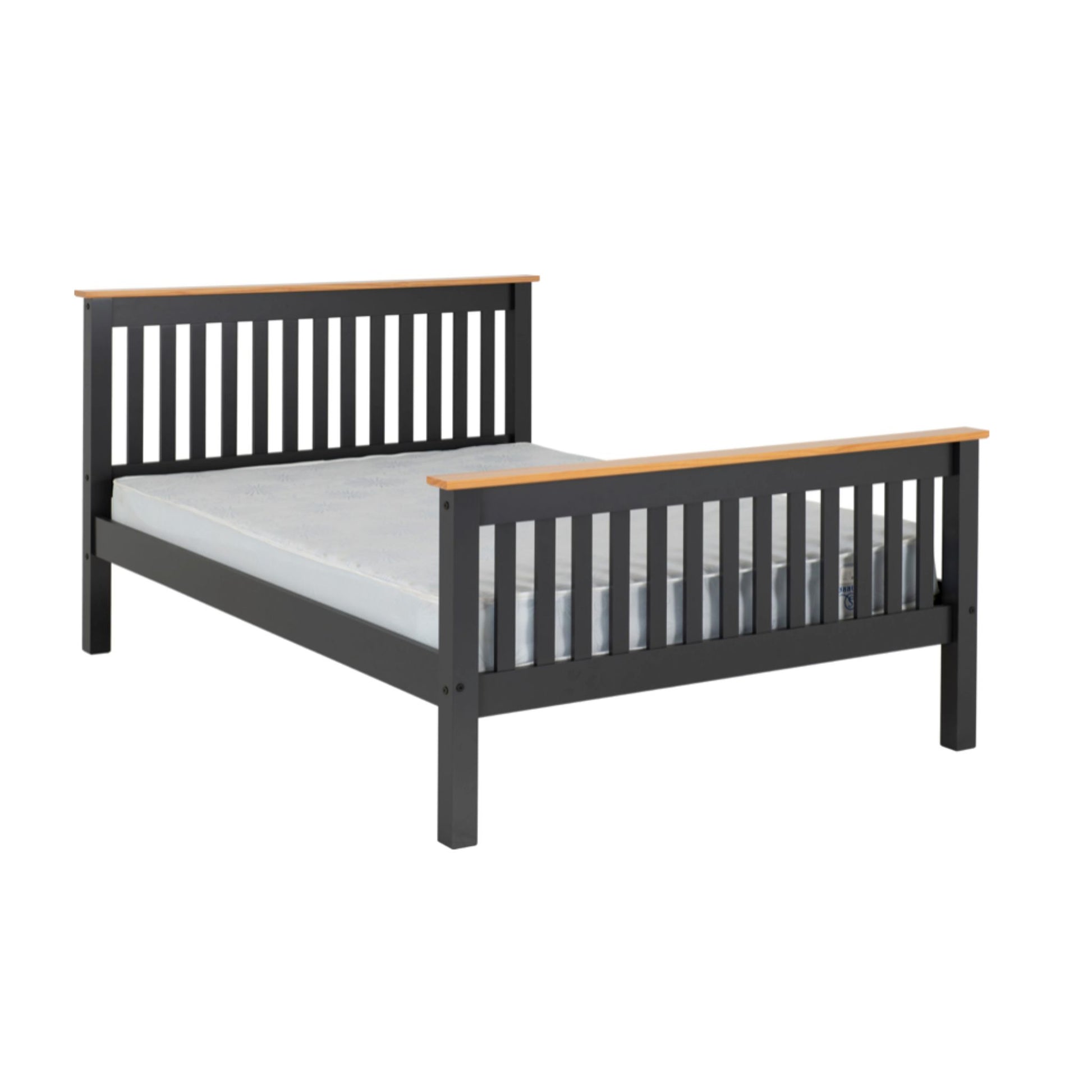 Monaco 4"6 Bed with High Foot End Finished in Grey Laquer and Oak.