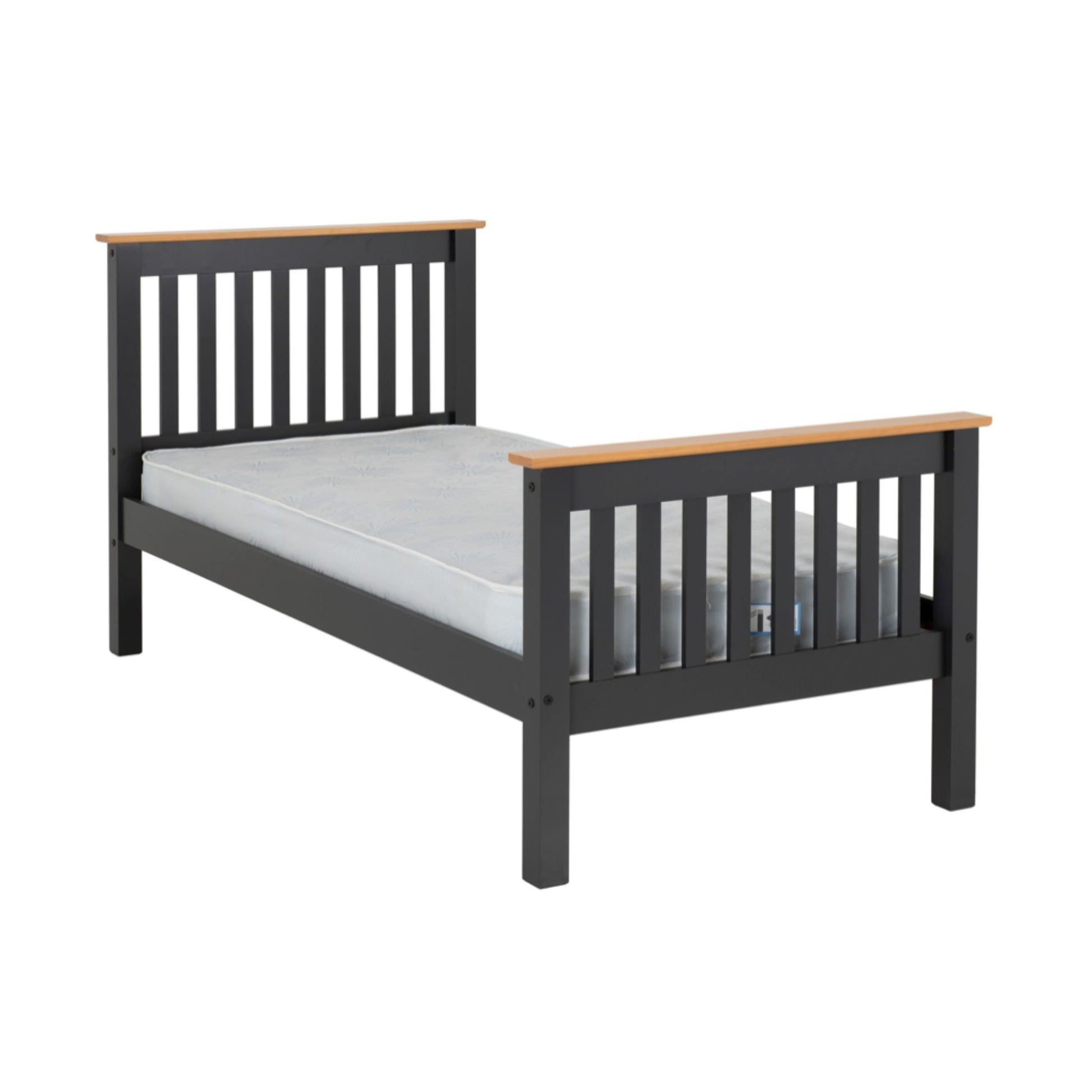 Monaco High Foot end Single Bed in Grey/Oak
