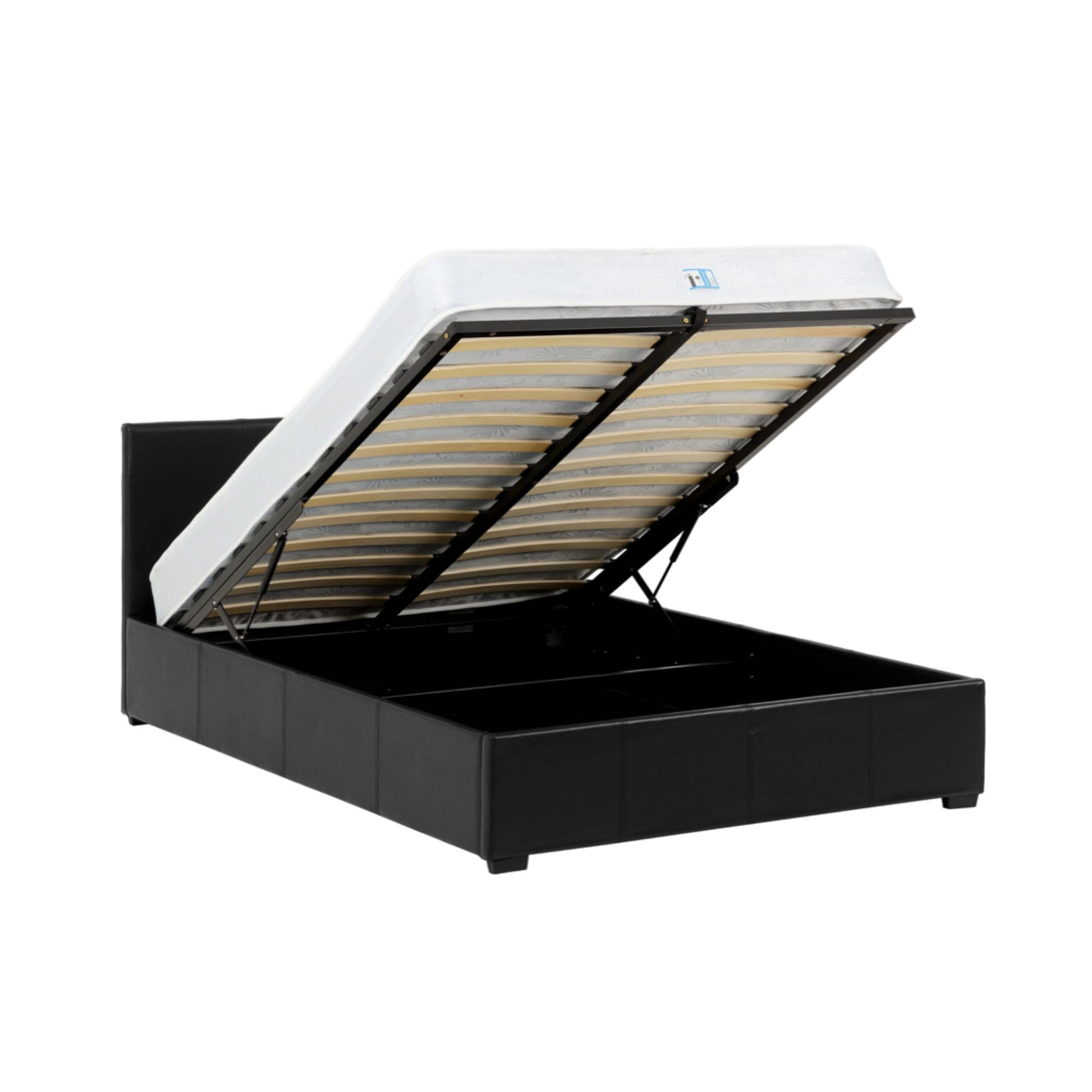 Waverley 4"6 Bed with Storage. A faux black leather bed frame with under mattress storage.